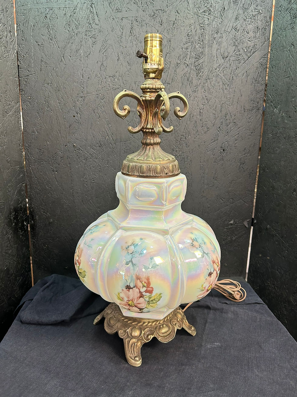 White w/pink and blue flowers Table Lamp
